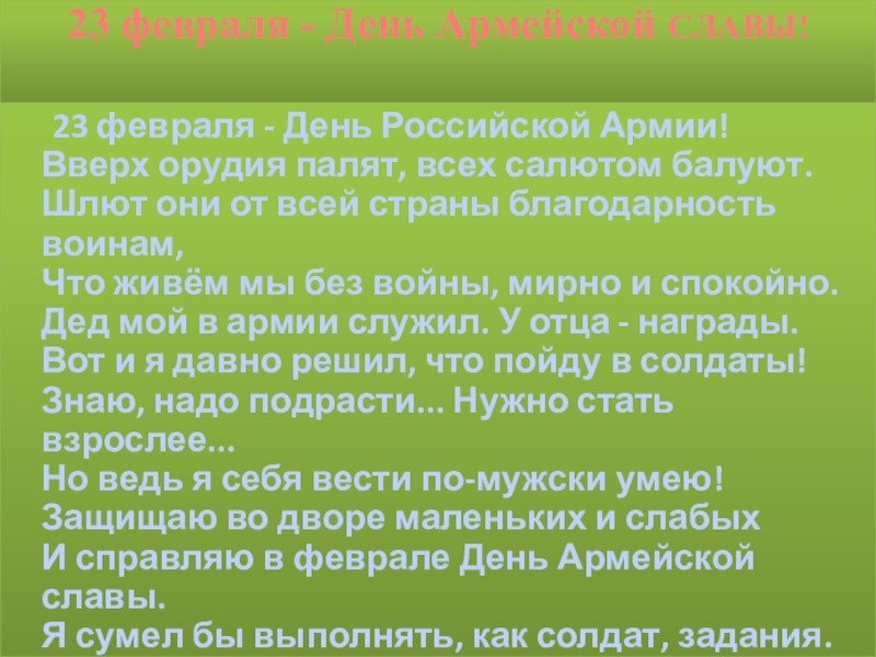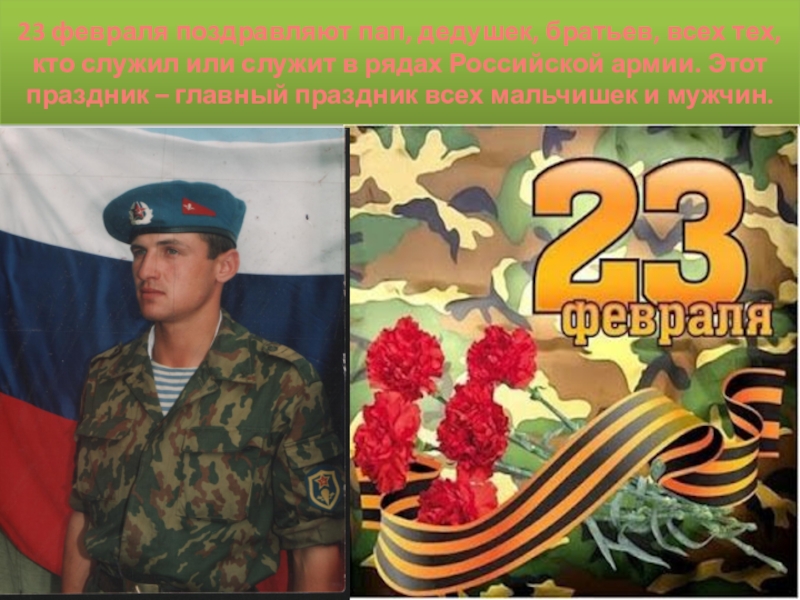 служит в рядах Российской армии. Этот праздник – главный праздник всех мальчишек и мужчин.