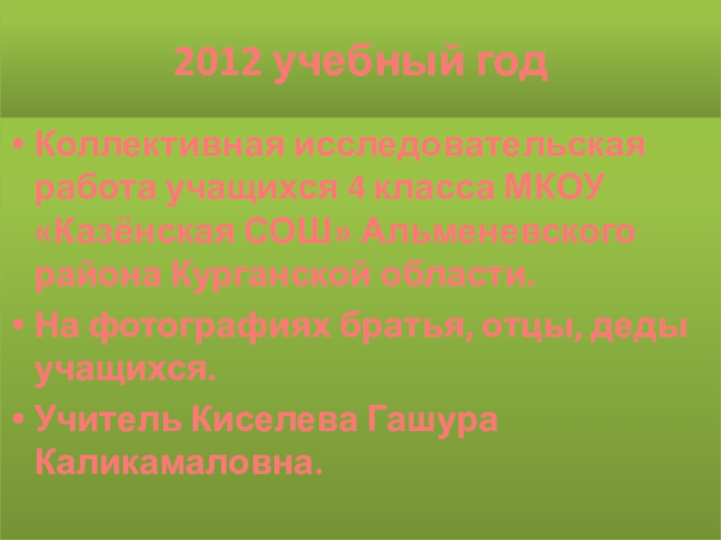 Коллективная исследовательская работа учащихся 4 класса МКОУ «Казёнская СОШ»