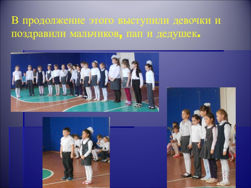 Слайд 4В продолжение этого выступили девочки и поздравили мальчиков, пап и дедушек.