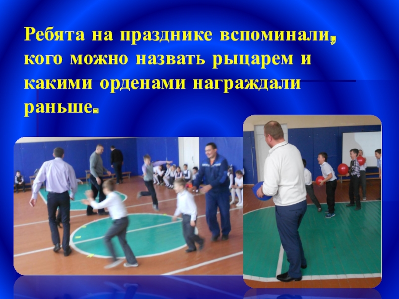 Слайд 6Ребята на празднике вспоминали, кого можно назвать рыцарем и какими орденами