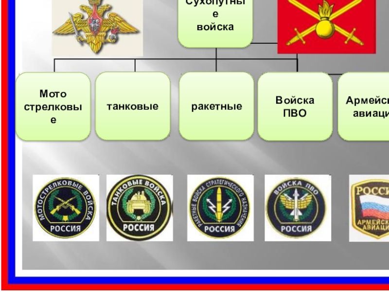 Сухопутные войскаМотострелковыетанковыеракетныеВойска ПВОАрмейская авиация