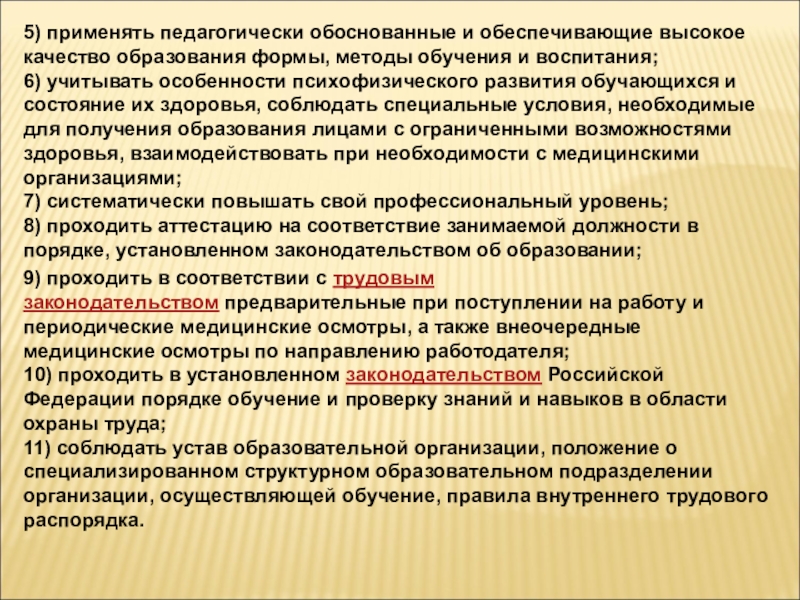 Слайд 175) применять педагогически обоснованные и обеспечивающие высокое качество образования формы, методы