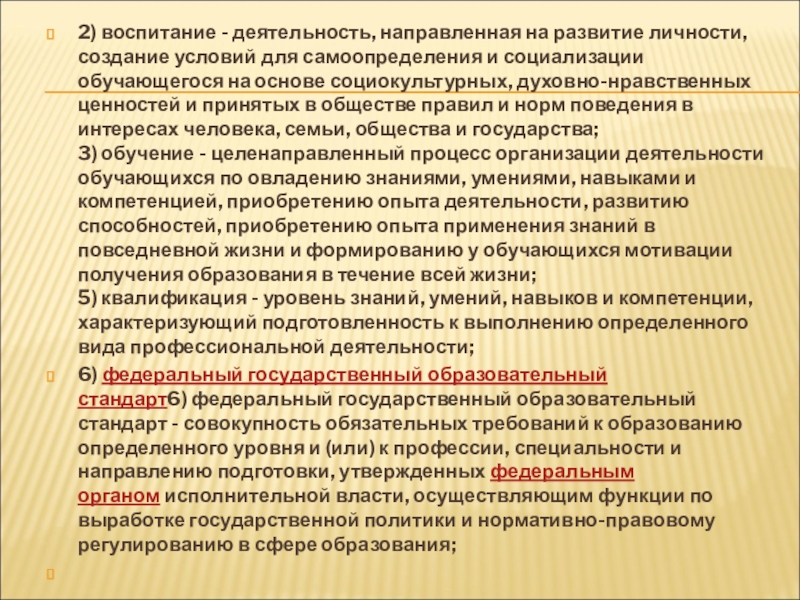 Слайд 42) воспитание - деятельность, направленная на развитие личности, создание условий для самоопределения и