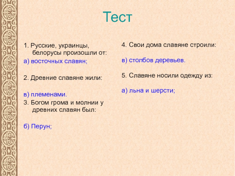 5. Славяне носили одежду из: