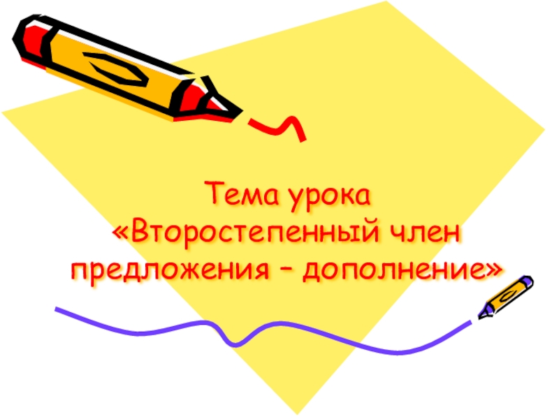 Слайд 3Тема урока «Второстепенный член предложения – дополнение»