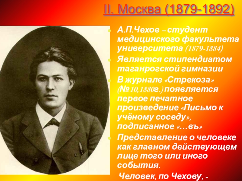 Особенности мироощущения Чехова, сформированные в период 1876-1879гг.
