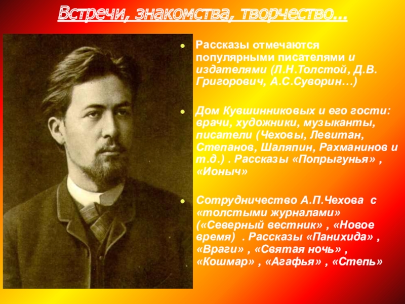 Медицинская практика – пища для литературных опытов («У постели больного», «Палата №6», «Случай из практики», «Чёрный монах», «Ионыч»...)