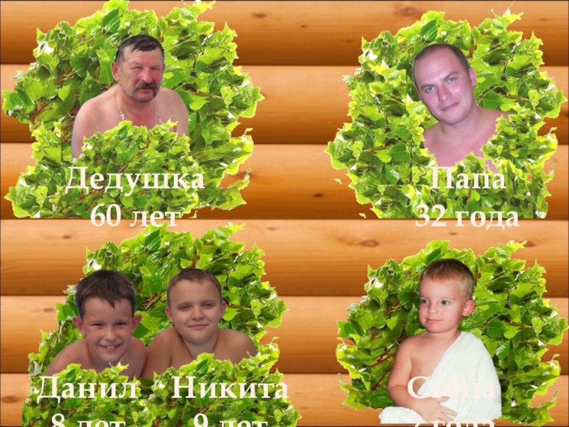 Папа32 годаНикита9 летСтёпа2 годаДедушка60 летДанил8 лет