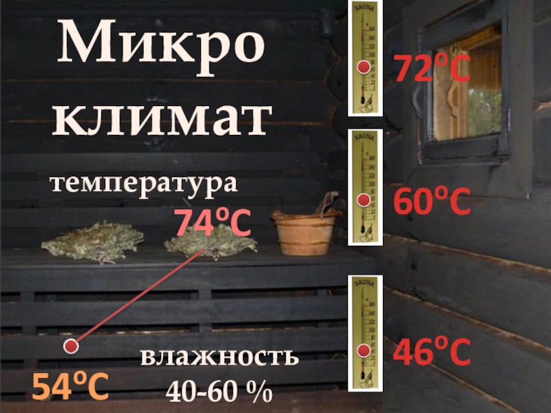 Микроклимат46oC60oC72oC54oC74oCтемпературавлажность40-60 %
