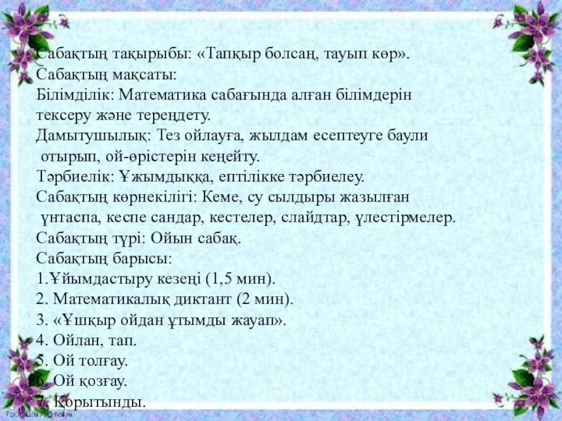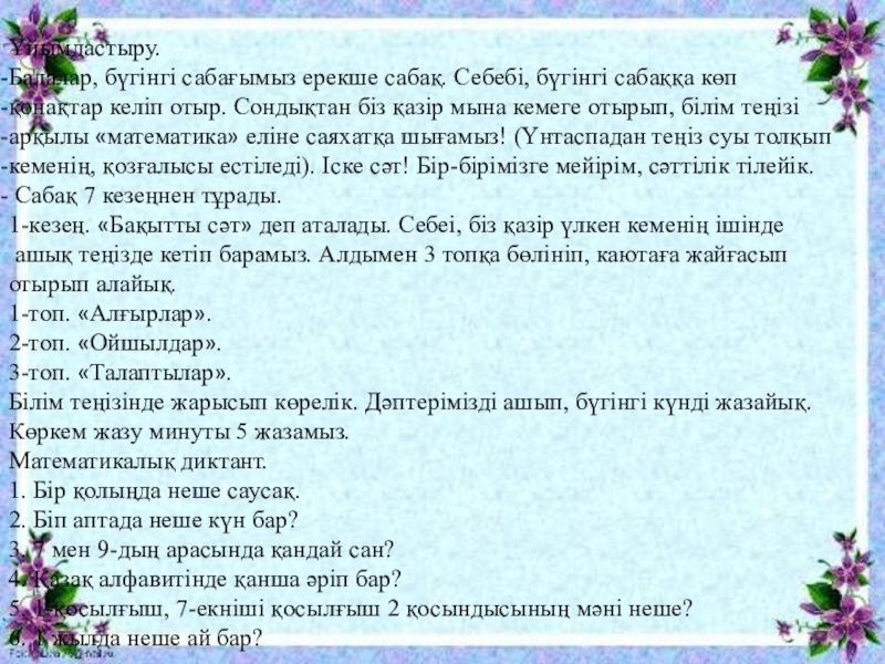 Өте жақсы, ендеше білім теңізіне «Математика» еліне саяхатымызды