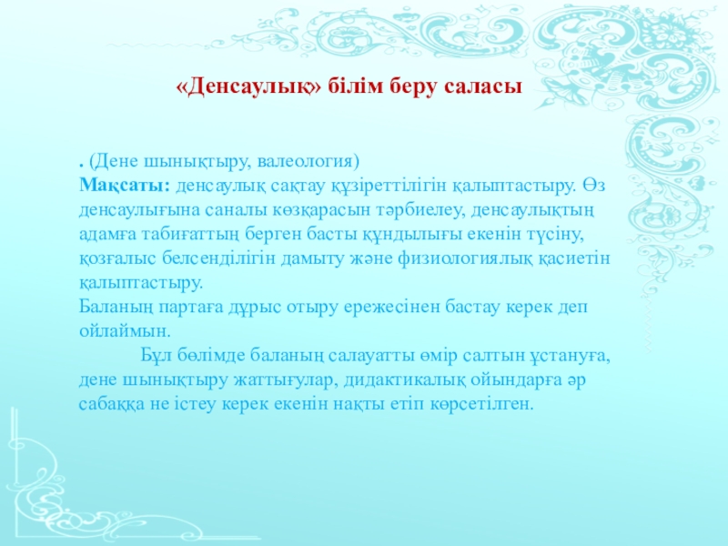 «Денсаулық» білім беру саласы