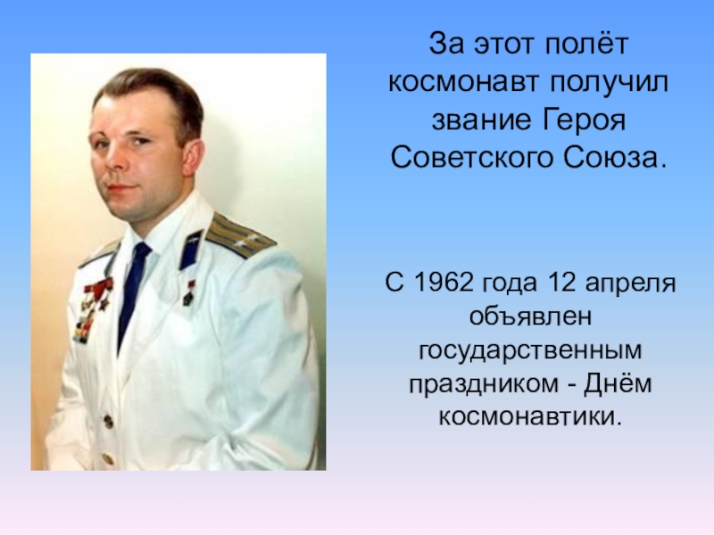 ЧЕЛОВЕКА В КОСМОС ПОСВЯЩАЕТСЯ