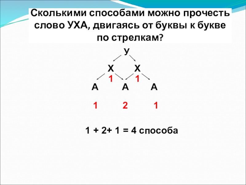 1 + 2+ 1 = 4 способа