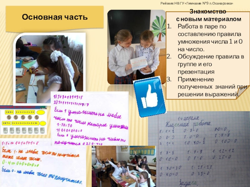 Ученики придут к выводу, что при умножении числа 1 на любое другое число, получается число, на которое умножали. А при умножении 0 на любое число всегда получается 0.