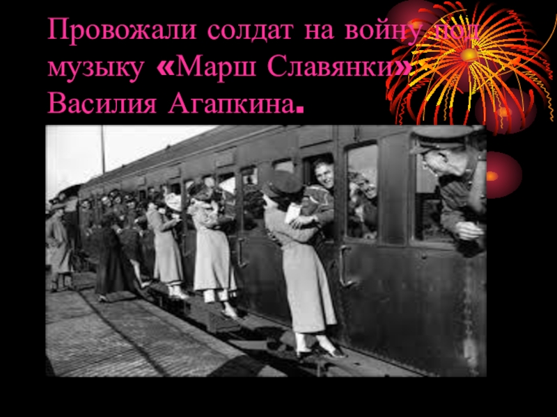 Слайд 4Провожали солдат на войну под музыку «Марш Славянки» Василия Агапкина.