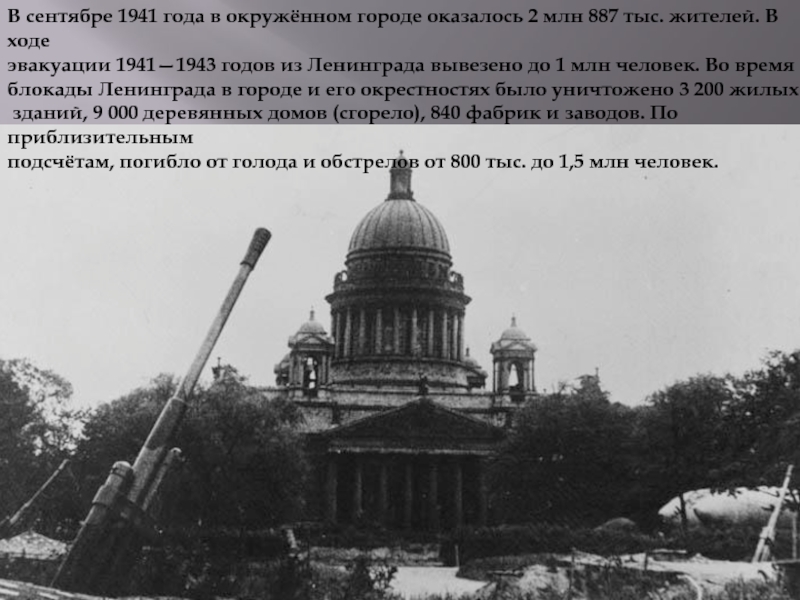 Слайд 22В сентябре 1941 года в окружённом городе оказалось 2 млн 887 тыс.