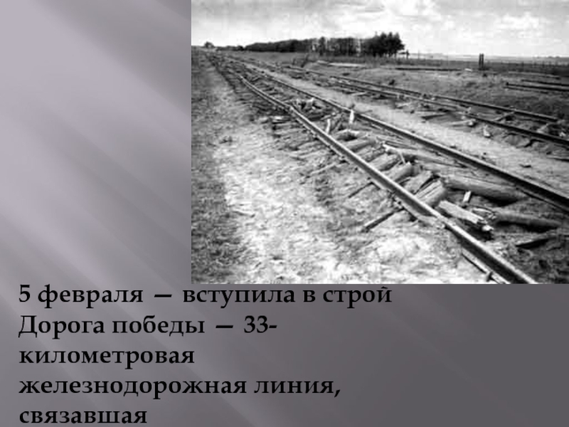 5 февраля — вступила в строй Дорога победы — 33-километровая железнодорожная линия, связавшая Ленинград с «Большой землёй».