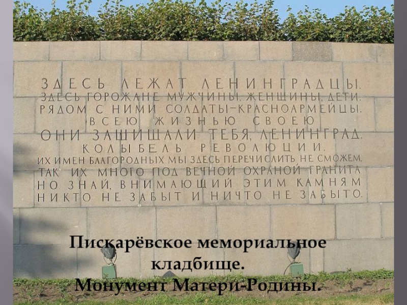 Слайд 28Пискарёвское мемориальное кладбище.