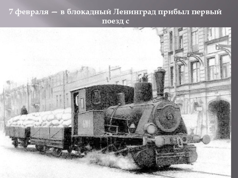 Слайд 207 февраля — в блокадный Ленинград прибыл первый поезд с