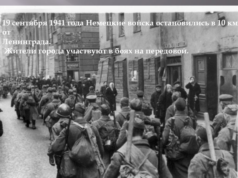 19 сентября 1941 года Немецкие войска остановились в 10 км от Ленинграда. Жители города участвуют в боях на передовой.