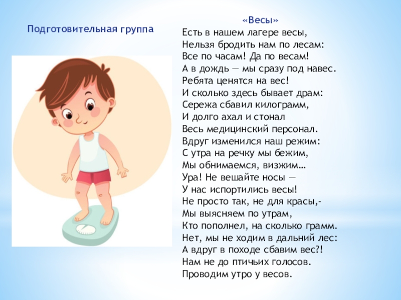 Есть в нашем лагере весы, Нельзя бродить нам по лесам: