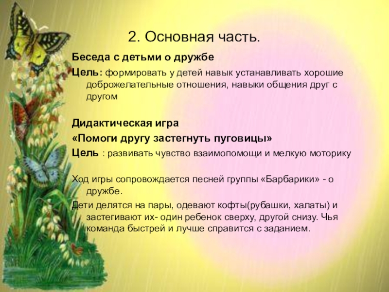 формировать у детей навык устанавливать хорошие доброжелательные отношения, навыки общения друг с другом;