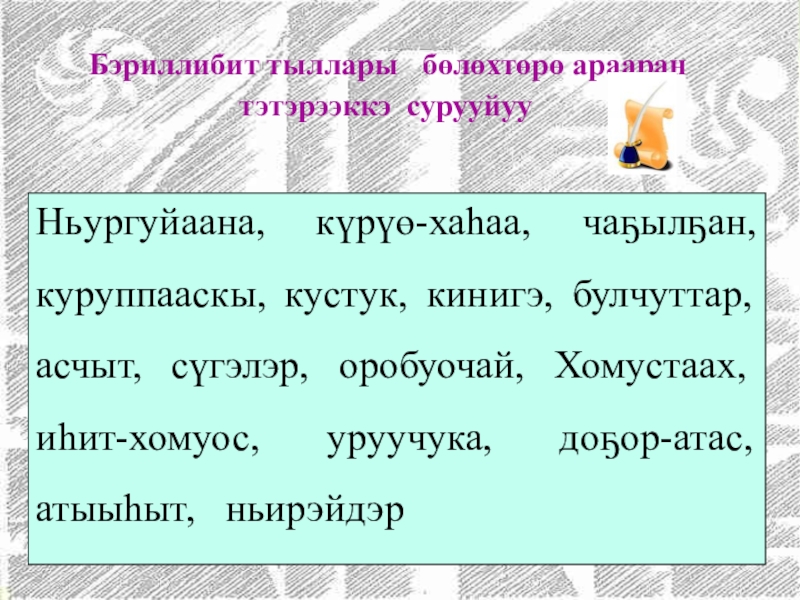 2. Бу кэпсээнтэн аат тыллар араастарын булан