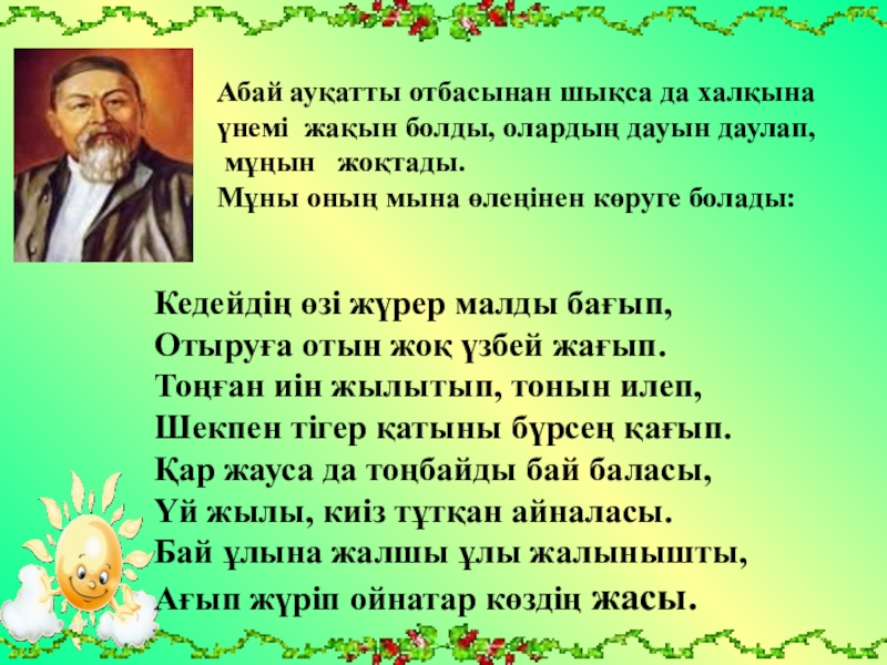 Абай ауқатты отбасынан шықса да халқына