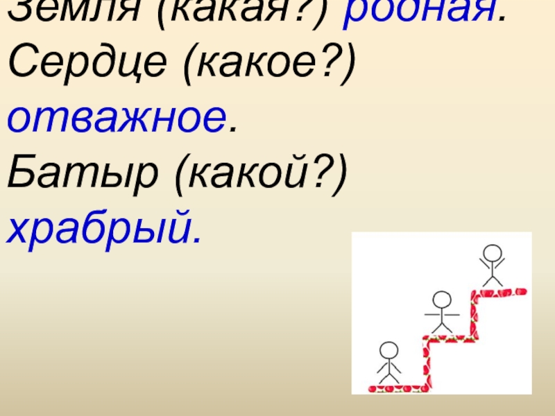 Земля (какая?) родная.  Сердце (какое?) отважное.Батыр (какой?) храбрый.