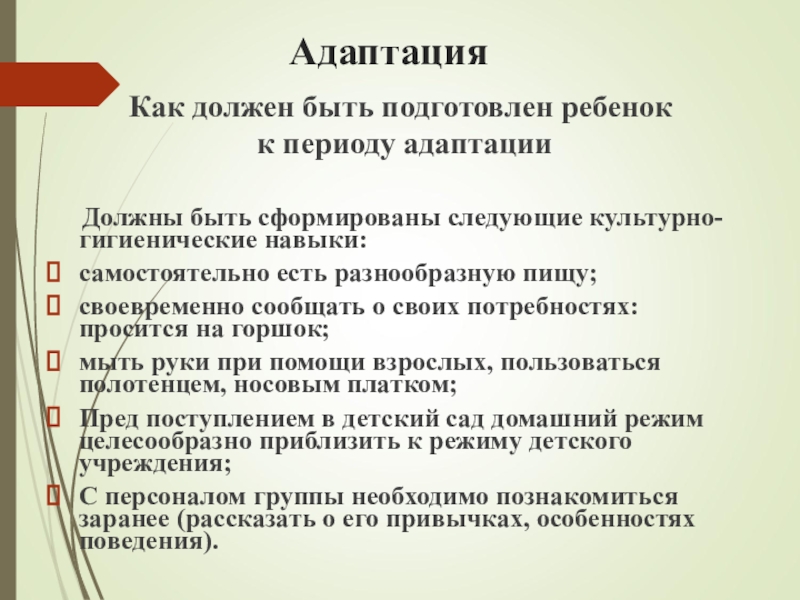 к периоду адаптации