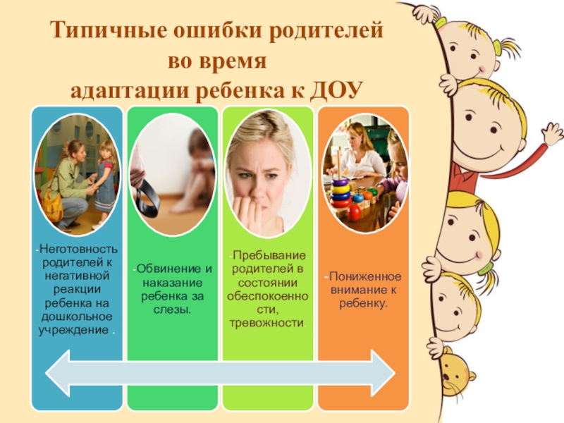Слайд 5Типичные ошибки родителей во время адаптации ребенка к ДОУ