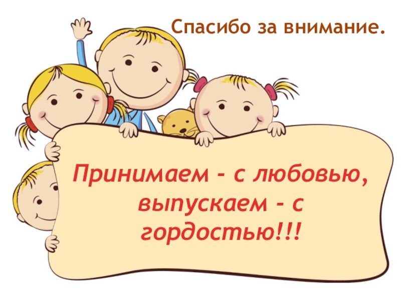 Принимаем - с любовью, выпускаем - с гордостью!!!Спасибо за внимание.