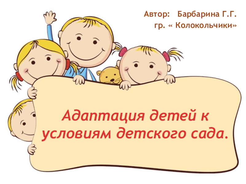 Адаптация детей к условиям детского сада.Автор:  Барбарина Г.Г.гр. « Колокольчики»