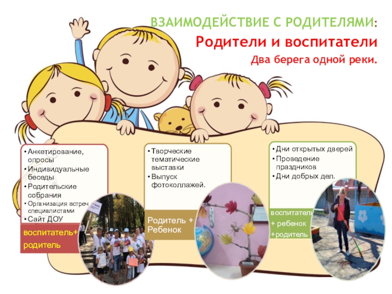 ВЗАИМОДЕЙСТВИЕ С РОДИТЕЛЯМИ:Родители и воспитателиДва берега одной реки.