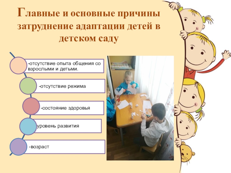 Слайд 3Главные и основные причины затруднение адаптации детей в детском саду