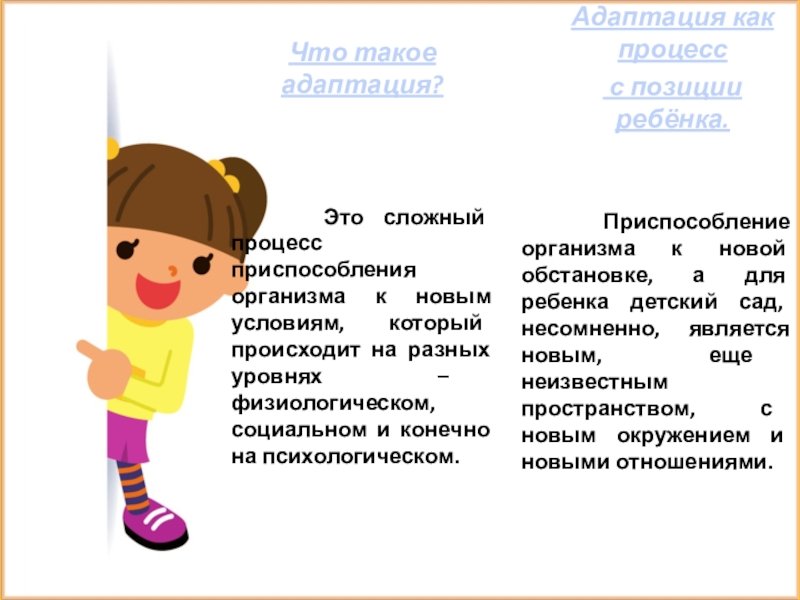 Приспособление организма к новой обстановке, а для ребенка детский сад, несомненно, является новым, еще неизвестным пространством, с новым окружением и новыми отношениями.