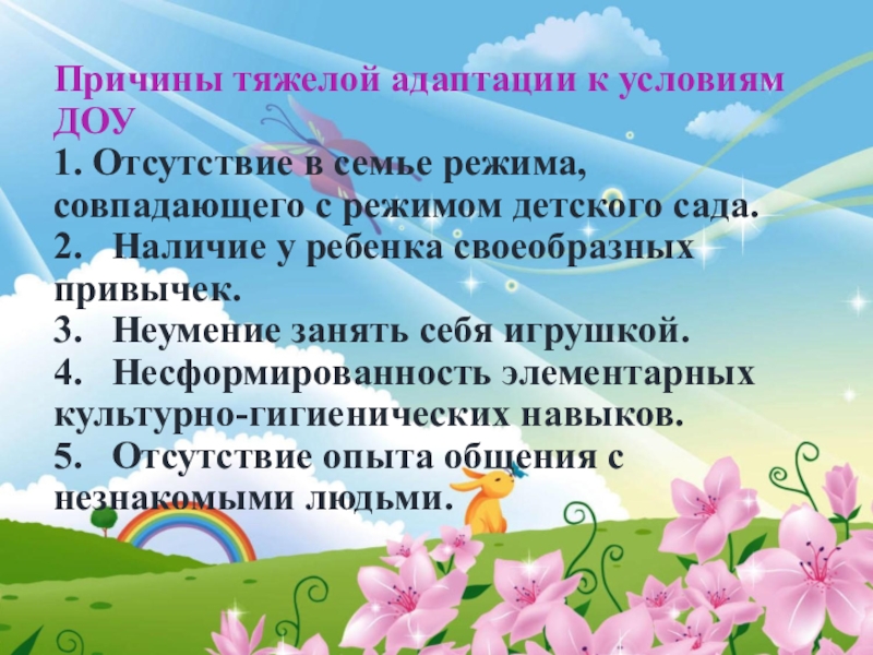 Слайд 7Причины тяжелой адаптации к условиям ДОУ
