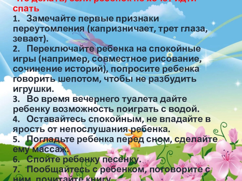 Слайд 11Что делать, если ребенок не хочет идти спать