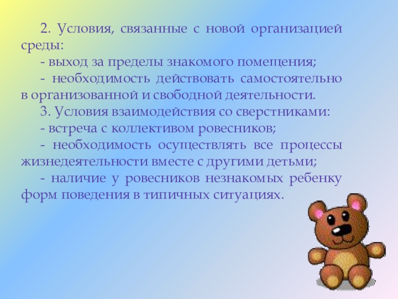 1. Условия связанные с новой организацией взаимодействия со взрослым: