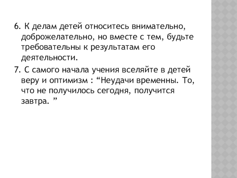 Слайд 136. К делам детей относитесь внимательно, доброжелательно, но вместе с тем,