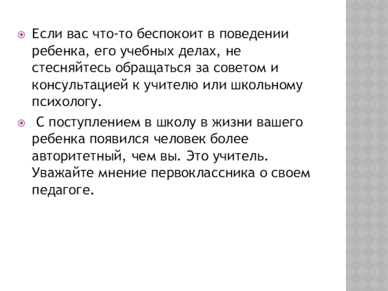 Слайд 8Если вас что-то беспокоит в поведении ребенка, его учебных делах, не