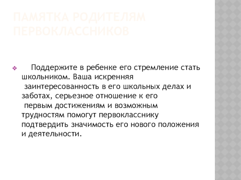 ПАМЯТКА РОДИТЕЛЯМ ПЕРВОКЛАССНИКОВ