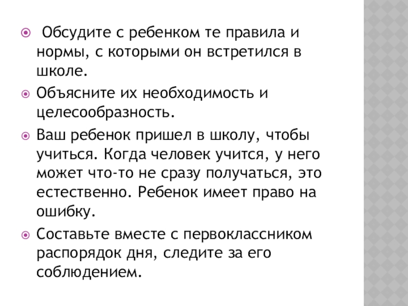 Слайд 6 Обсудите с ребенком те правила и нормы, с которыми он