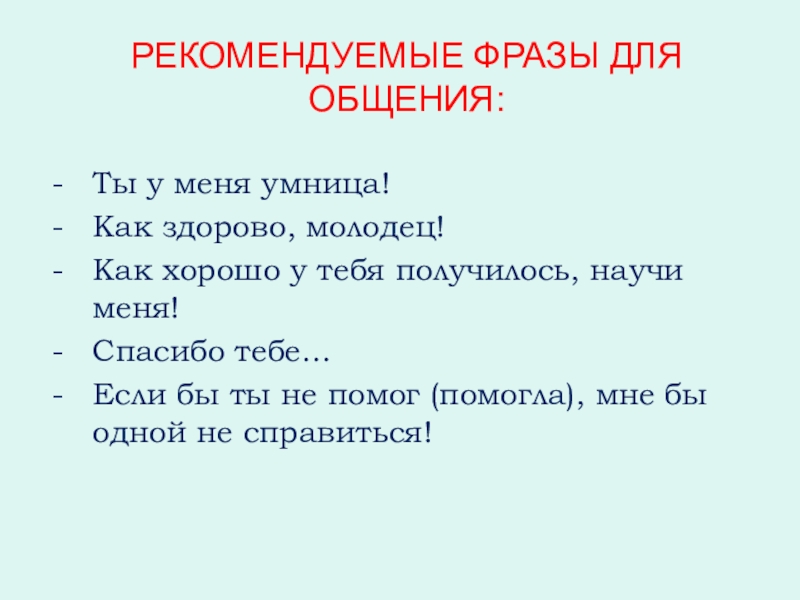 Слайд 19НЕ РЕКОМЕНДУЕМЫЕ ФРАЗЫ ДЛЯ ОБЩЕНИЯ: