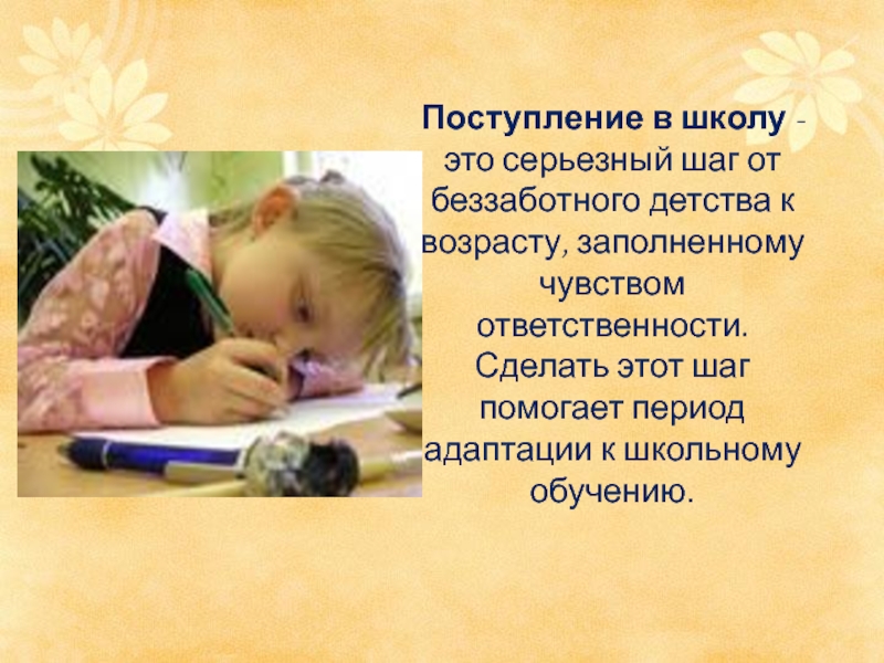 возрасту, заполненному чувством ответственности. Сделать этот шаг помогает период адаптации к школьному обучению.