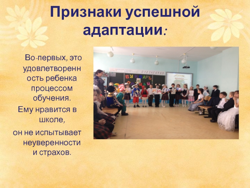 Признаки успешной адаптации:
