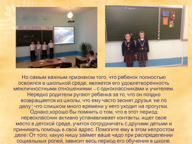 Слайд 20Но самым важным признаком того, что ребенок полностью освоился в школьной
