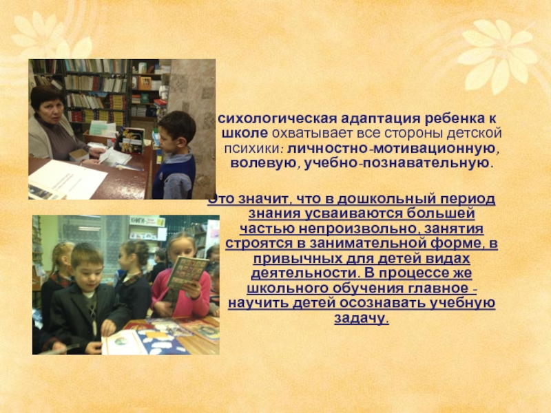 Психологическая адаптация ребенка к школе охватывает все стороны детской психики: личностно-мотивационную,