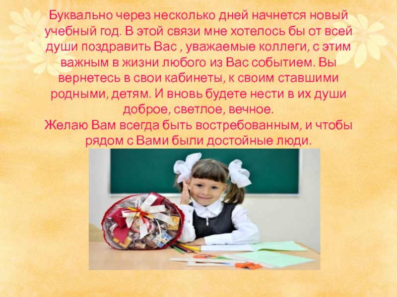 Слайд 26Буквально через несколько дней начнется новый учебный год. В этой связи