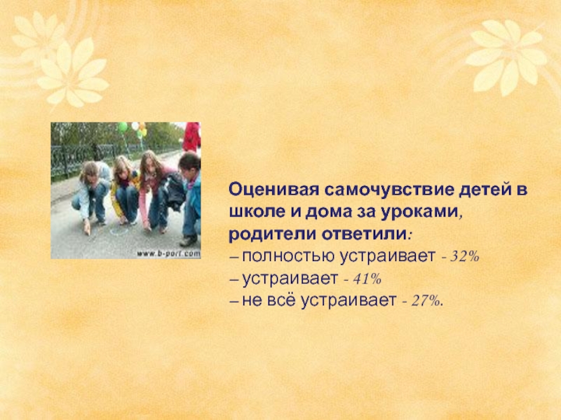 Оценивая самочувствие детей в школе и дома за уроками, родители ответили: